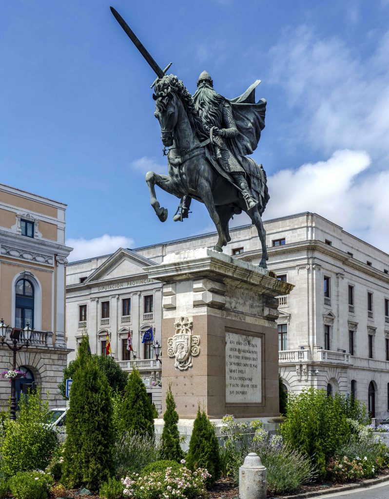 En Burgos sigue latiendo con intensidad el pulso de El Cid Campeador, el personaje más famoso de toda su historia. La ciudad está repleta de hitos cidianos —recogidos en una señalizada ruta— que recuerdan la presencia, legendaria o real, de Rodrigo Díaz de Vivar. Entre todos destacan el Solar del Cid, la iglesia de Santa Águeda, la Catedral —en la que están enterrados sus restos y se conservan su famoso cofre y la carta de arras de su matrimonio con doña Jimena—, el arco de Santa María, el monumento sobre la glera del Arlanzón, el puente de San Pablo y la estatua ecuestre que preside la plaza del Cid. Cruzando el mencionado puente es sencillo llegar hasta el interesantísimo Museo de Burgos, donde se guarda la mítica y cidiana espada Tizona.